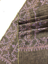 Black Mocha Superfine Hand Embroidered Modern Design Authentic Handwoven Real Cashmere Pashmina Stole