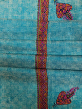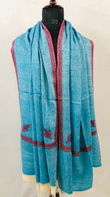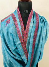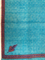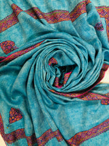 Boxing day Peacock Blue Handmade Box Weave Handcrafted Sozni Embroidery Border Real Cashmere Pashmina Stole Scarf Shawl