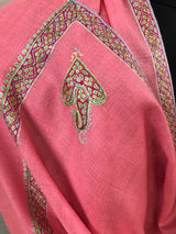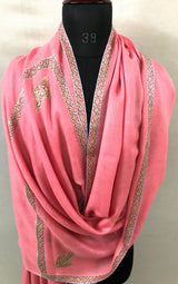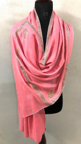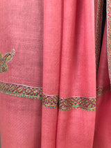 Cashmere Strawberry Pink Sozni Hand Embroidered Border Handwoven Real Cashmere Pashmina Stole Scarf Shawl