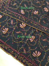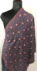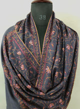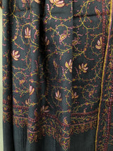 Charcoal gray maple jaal GI pashmina embroidered scarf, Indian shawl, women scarf, luxury, nikkah, festival, pashmina scarf