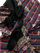 Exquisite Black Multicoloured Stripes Pure Pashmina Handcrafted Modern Design Embroidered Real Cashmere Pashmina Stole