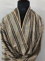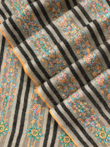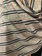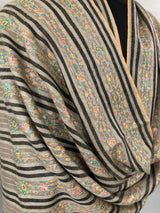 Natural grey and black stripes luxury modern design sozni fine hand embroidered unique design real cashmere pashmina stole shawl