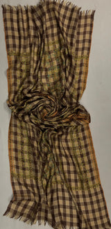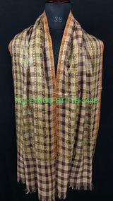 New Year's Eve Brown checkered Modern Design mice fine Embroidery Handmade Real Cashmere Pashmina Stole