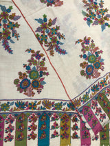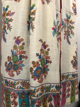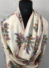 Off white floral print and outlined embroidered GI certified handcrafted real cashmere pashmina stole, shawl, Womens scarf
