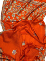 Orangeade super micro fine hand embroidered palla handwoven real cashmere pashmina wrap stole shawl