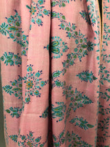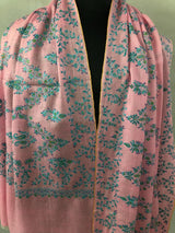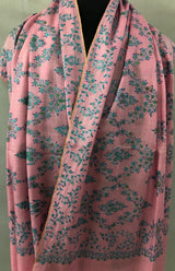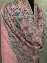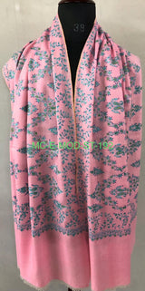 Orchid pink with blue and green micro fine embroidery modern design luxury real cashmere pashmina stole shawl