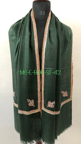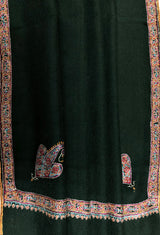 Pashmina christmas dayDark green sozni super fine hand Embroidered border handwoven real cashmere pashmina stole scarf shawl