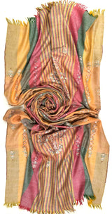 Pashmina Halloween Madras shadow stripes handcrafted micro fine embroidered modern design real cashmere pashmina stole shawl