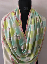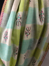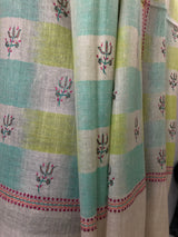 Tender Shoots Ikkat Weave Modern Design Fine Sozni Hand Embroidery Booties Handwoven Real Cashmere Pashmina Stole Scarf Shawl