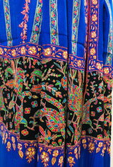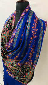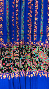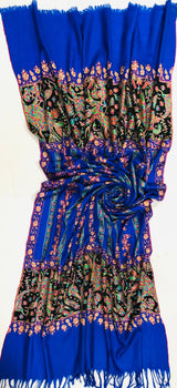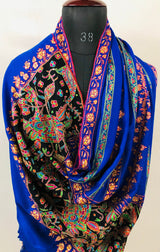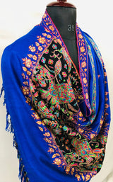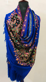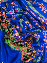 GI Handcrafted Snorkel Blue Fine Kani Kar Paisley Tree Pattern Embroidery Handwoven Real Ladakhi Cashmere Pashmina Shawl