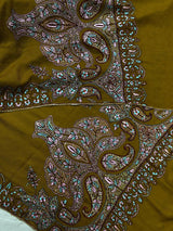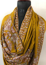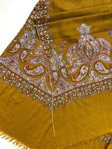 Handmade Dried tobacco mehrab paisley Kani Kar embroidery Palla handcrafted real cashmere pashmina shawl